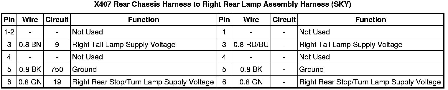 X407 Rear Chassis Harness to Right Rear Lamp Assembly Harness (SKY)