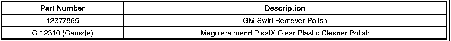 3. Apply a small amount of GM Swirl Remover Polish, P/N 12377965 (In Canada, use Meguiars brand PlastX Clear Plastic Cleaner Polish*), to a soft cotton cloth or micro-fiber cloth.