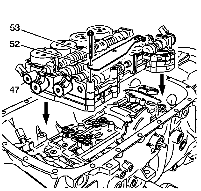 3. Install the control valve body accumulator assembly (47) onto the case.