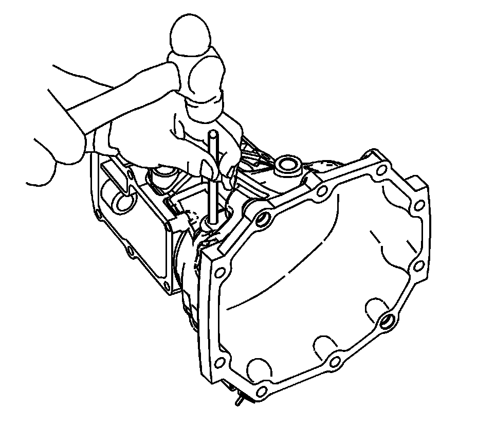 5. Remove the reverse control lever restrictor pin plug. Discard the plug. A new plug is required for assembly.
