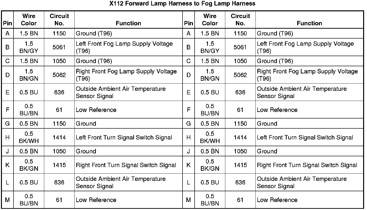 X112 Forward Lamp Harness to Fog Lamp Harness