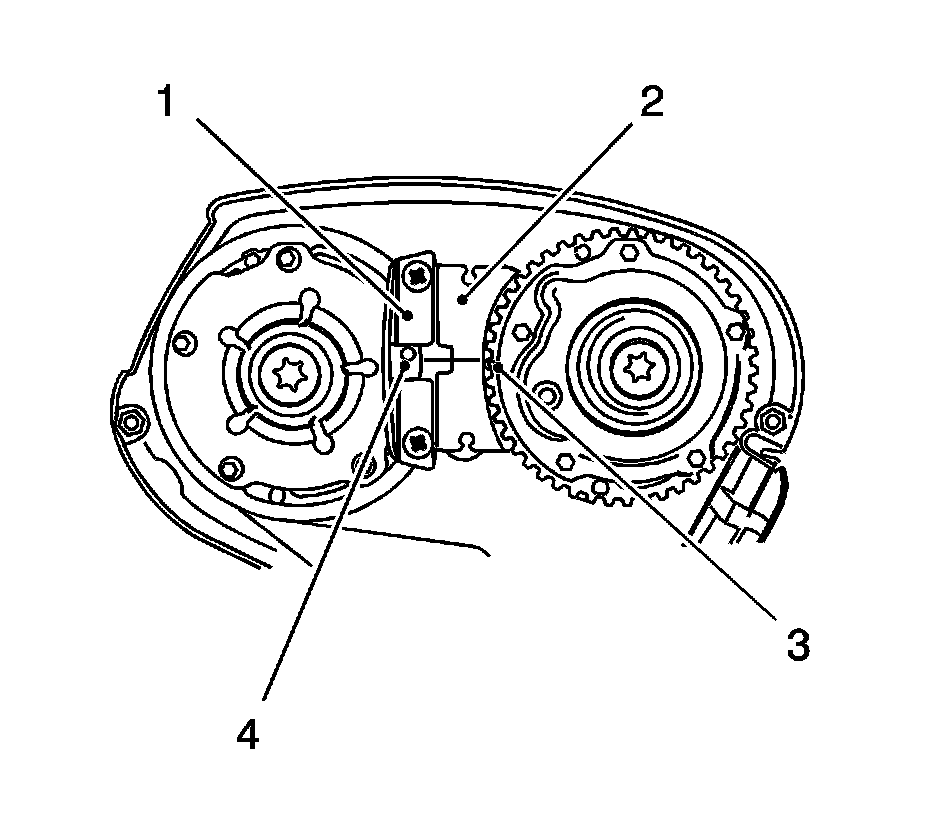 Note: The spot-type marking (4) on the intake camshaft adjuster does not correspond to the groove of MK-6340 during this process but must be somewhat above as shown.