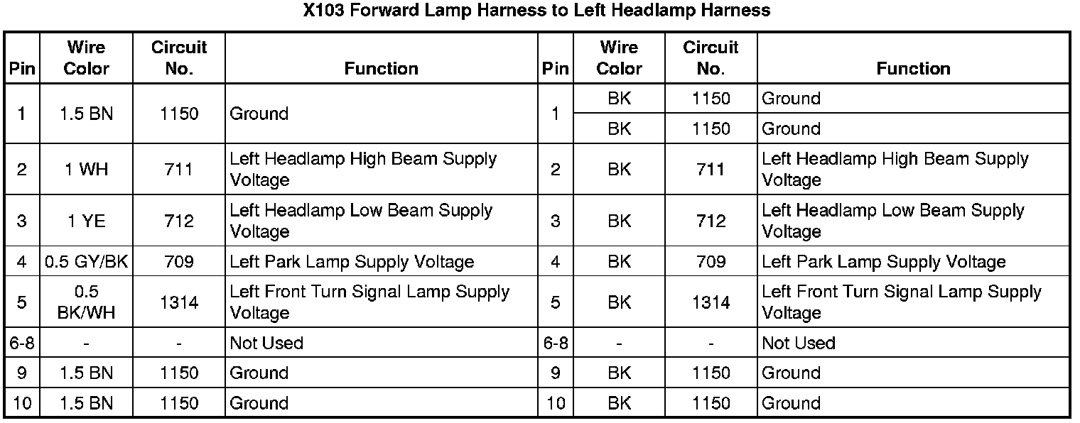 X103 Forward Lamp Harness to Left Headlamp Harness