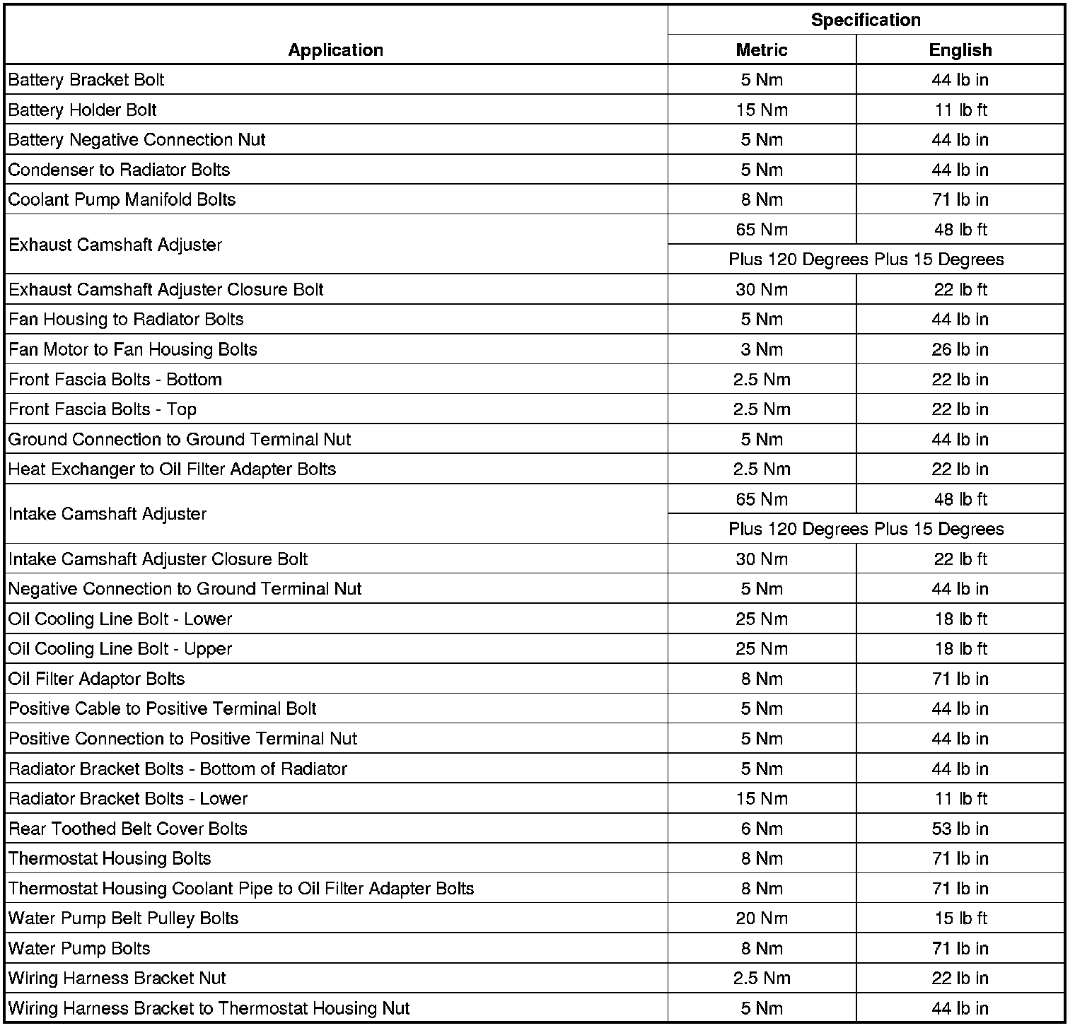 Fastener Tightening Specifications