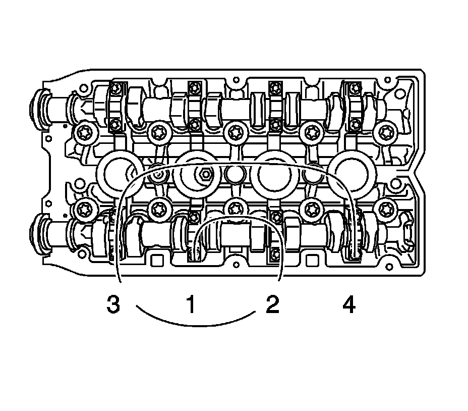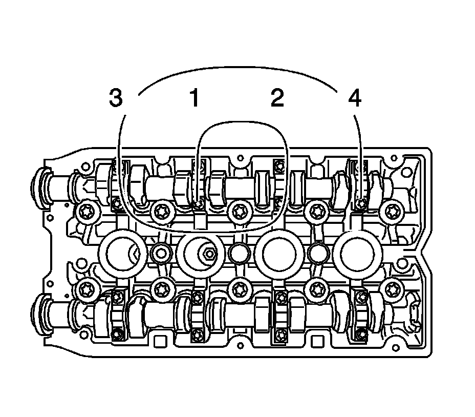 Tighten the camshaft bearing caps 2-5 in a spiral from the inside to the outside.