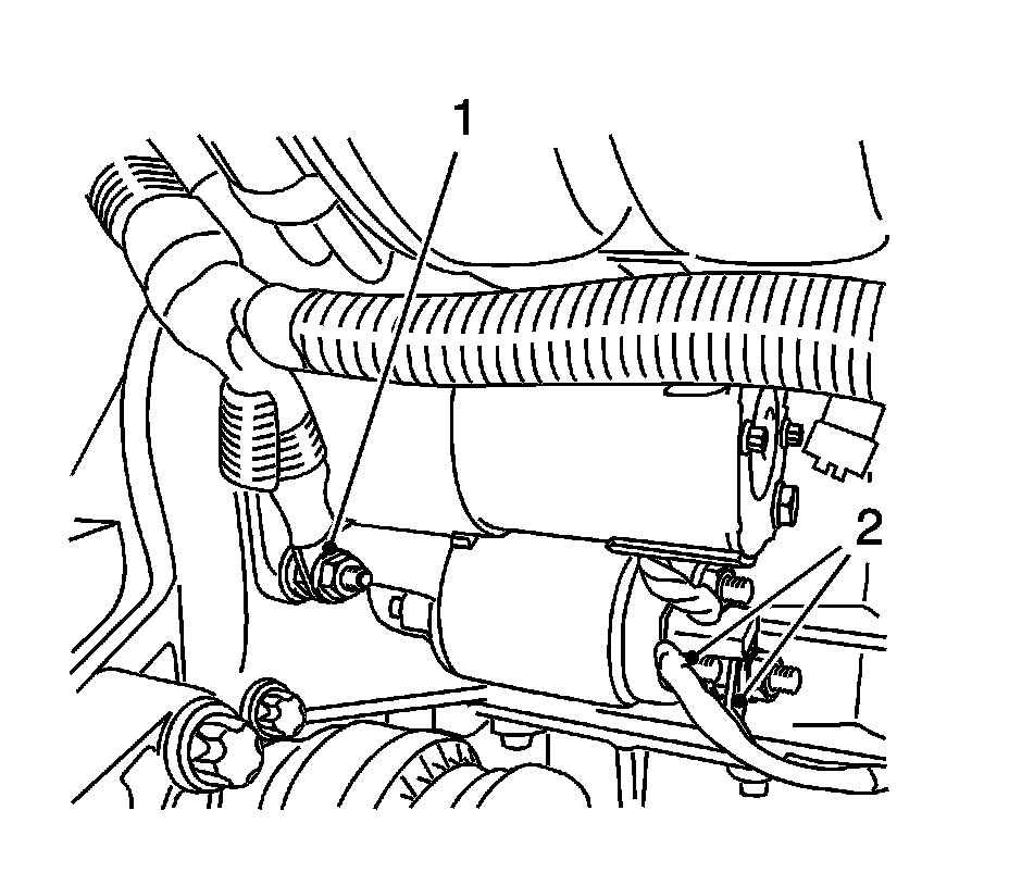 5. Remove the 2 positive cable (2) starter.