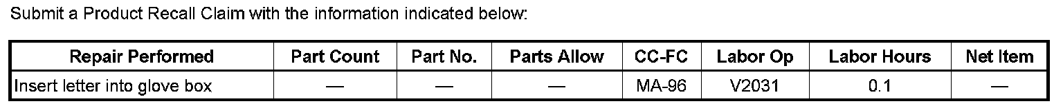 All unsold new vehicles in retailers possession and subject to this recall must be held and inspected/repaired per the service procedure of this recall bulletin before customers take possession of these vehicles.