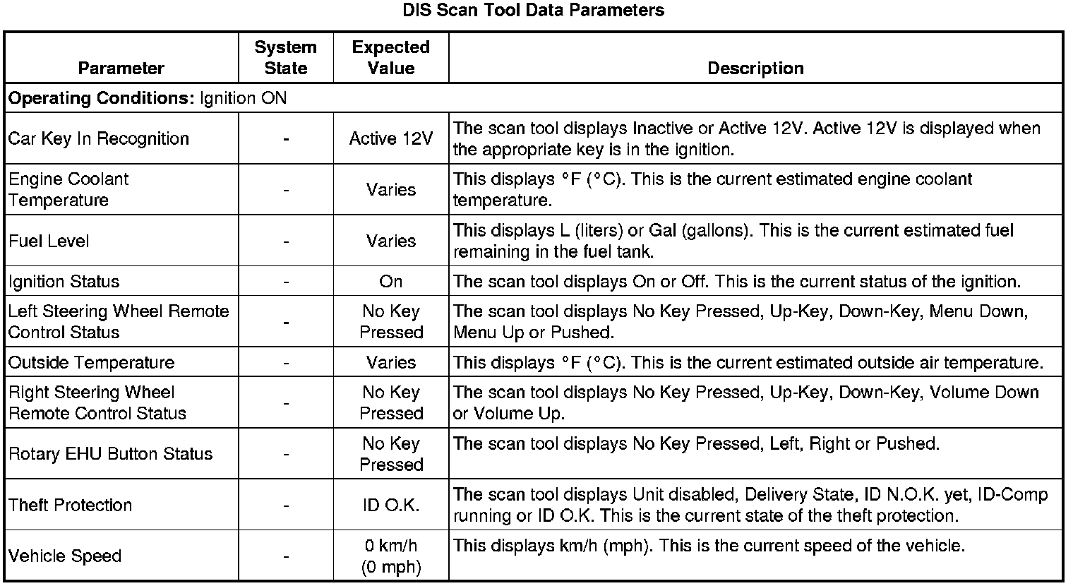 Driver Information Display Scan Tool Information