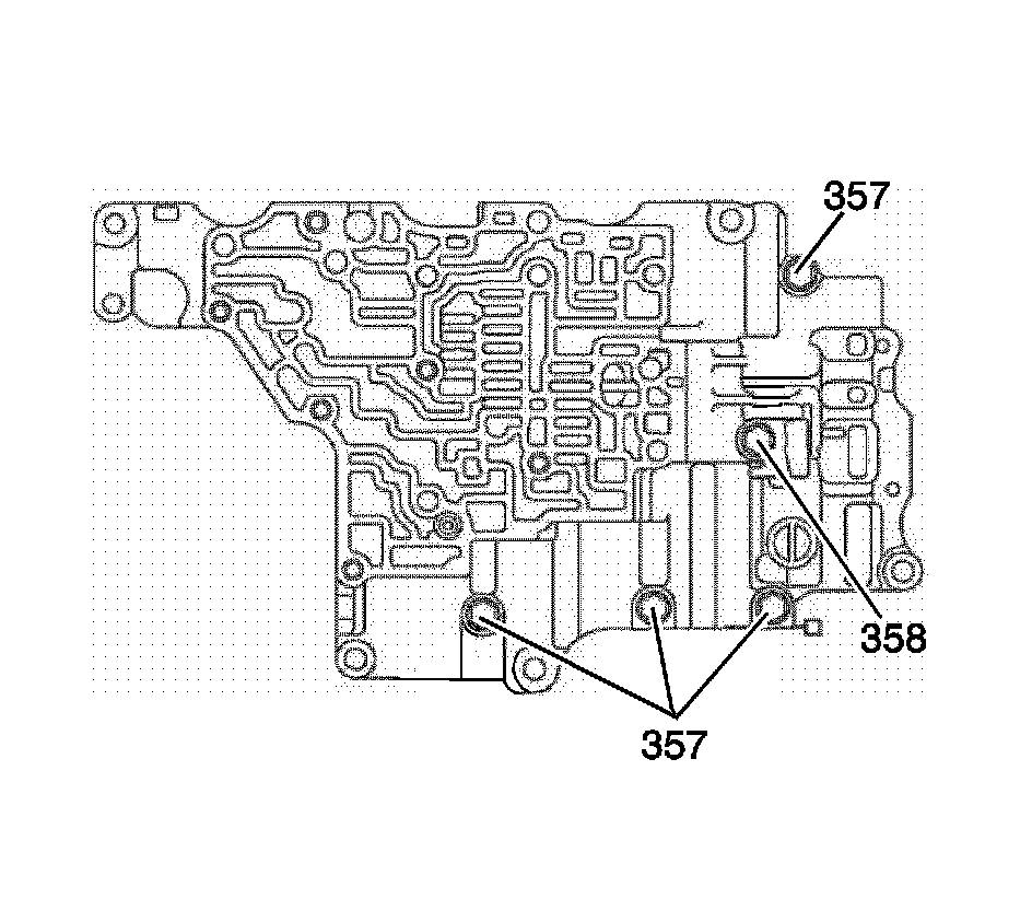 14. Temporarily tighten the 5 rear valve body bolts (357, 358).