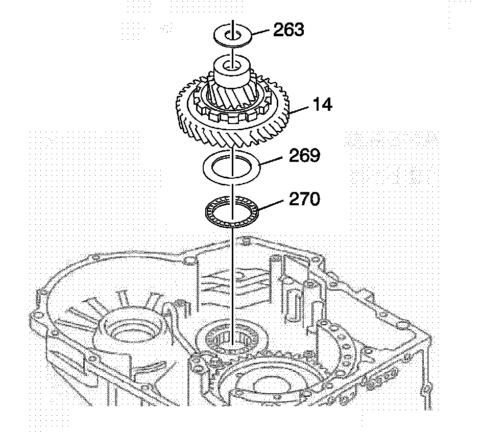 2. Remove the front differential transfer drive gear front thrust bearing race (263) from the front differential transfer drive gear assembly (14).