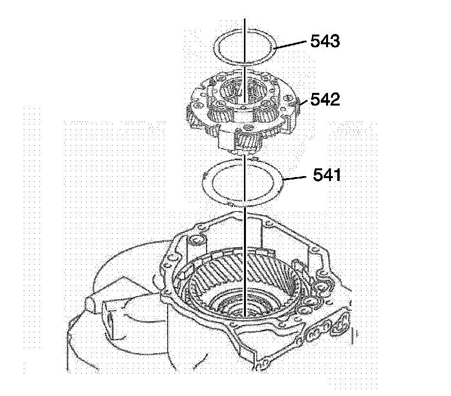 Remove the carrier thrust washer (541) and the carrier thrust bearing (543) from the carrier assembly (542).