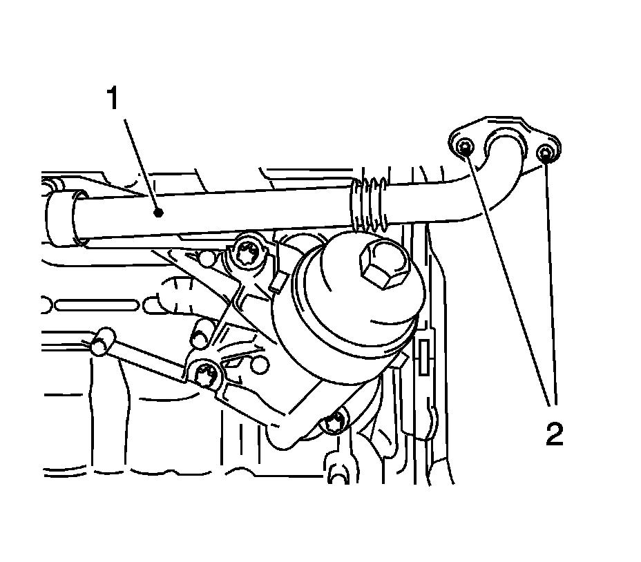 * Release the coolant pipe (1) and push into the oil filter housing.