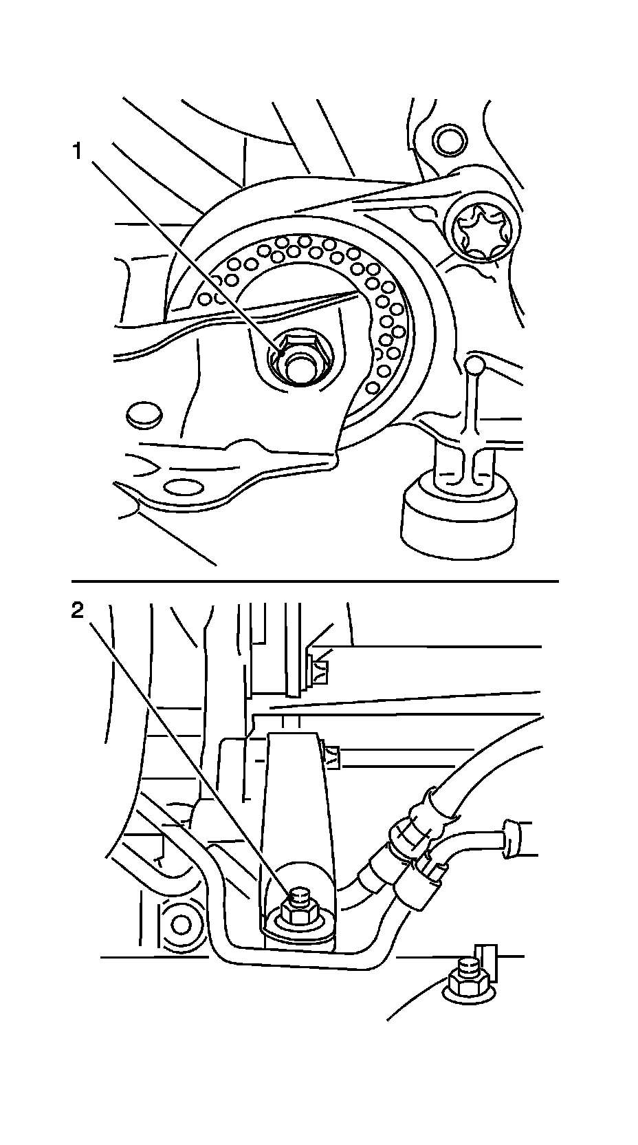 * Remove the 2 bolts (1) and (2).