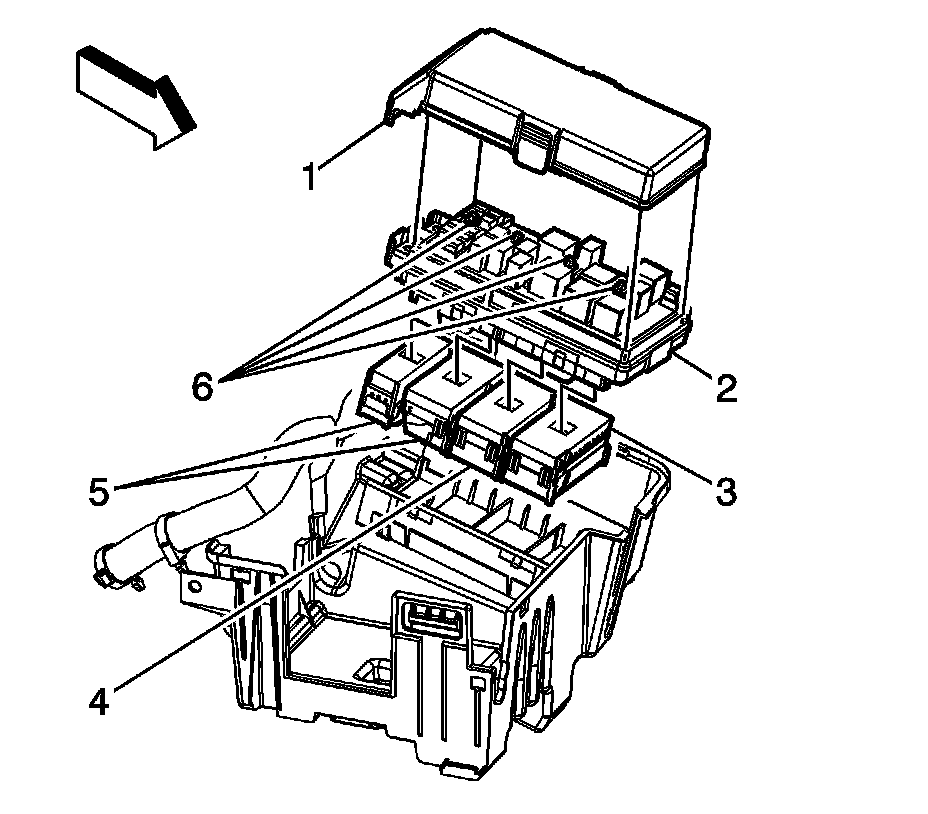 11. Remove the underhood bussed electrical connector (UBEC) cover (1).