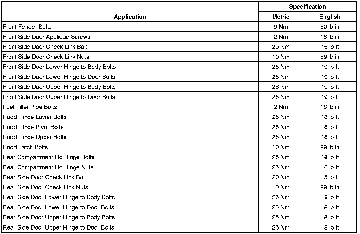 Fastener Tightening Specifications