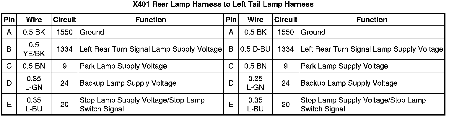X401 Rear Lamp Harness to Left Tail Lamp Harness