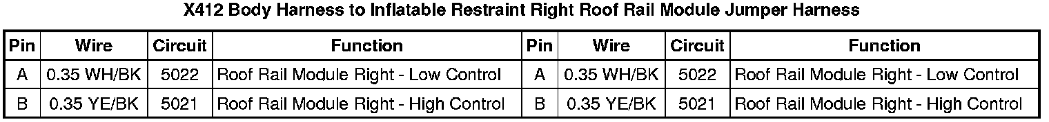 X412 Body Harness to Inflatable Restraint Right Roof Rail Module Jumper Harness