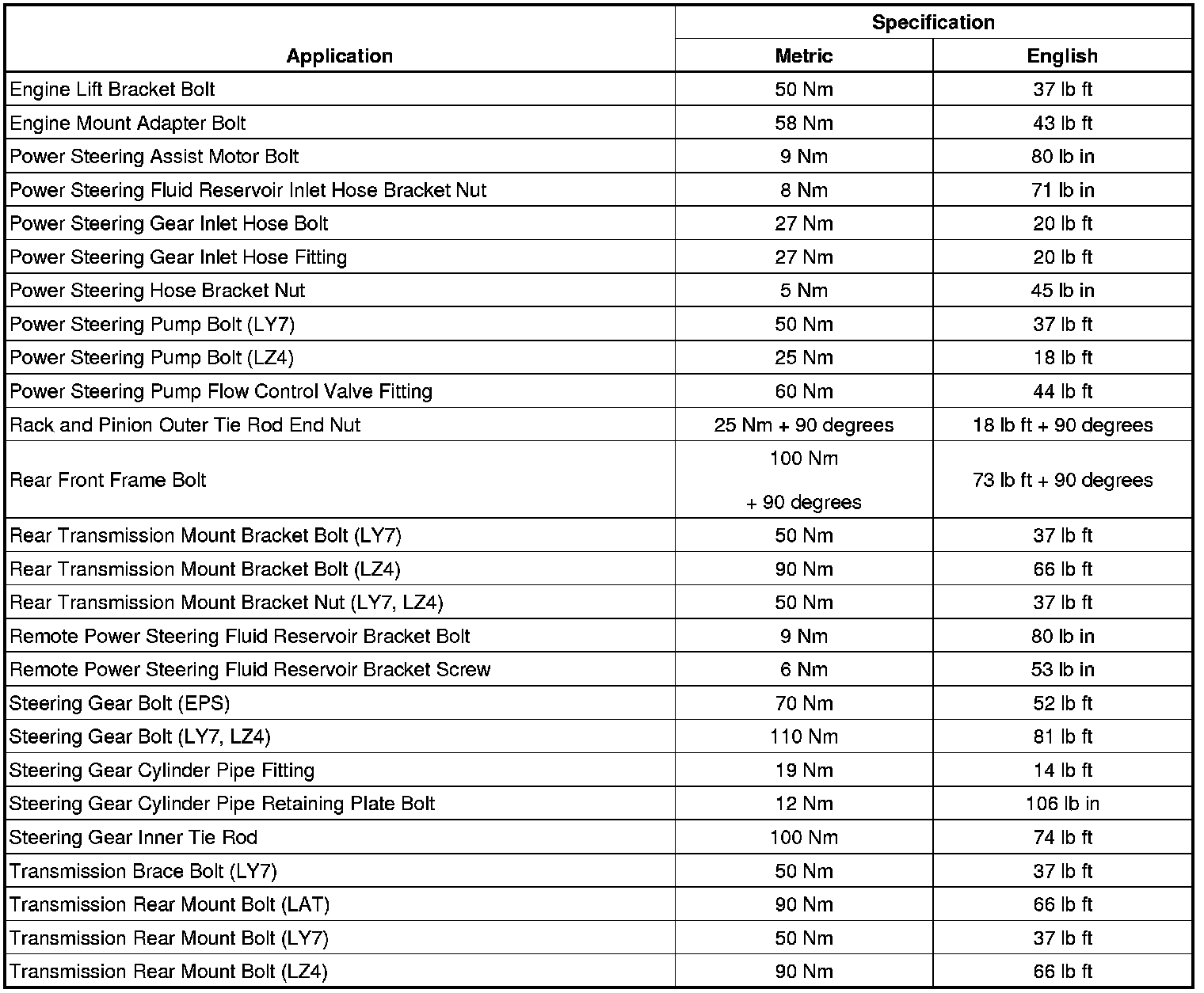 Fastener Tightening Specifications