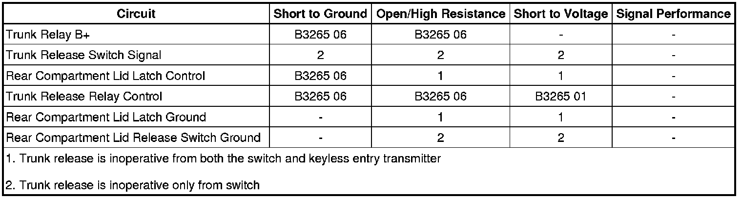 • If the rear compartment lid latch does not release, refer to Rear Compartment Lid Latch Malfunction.
