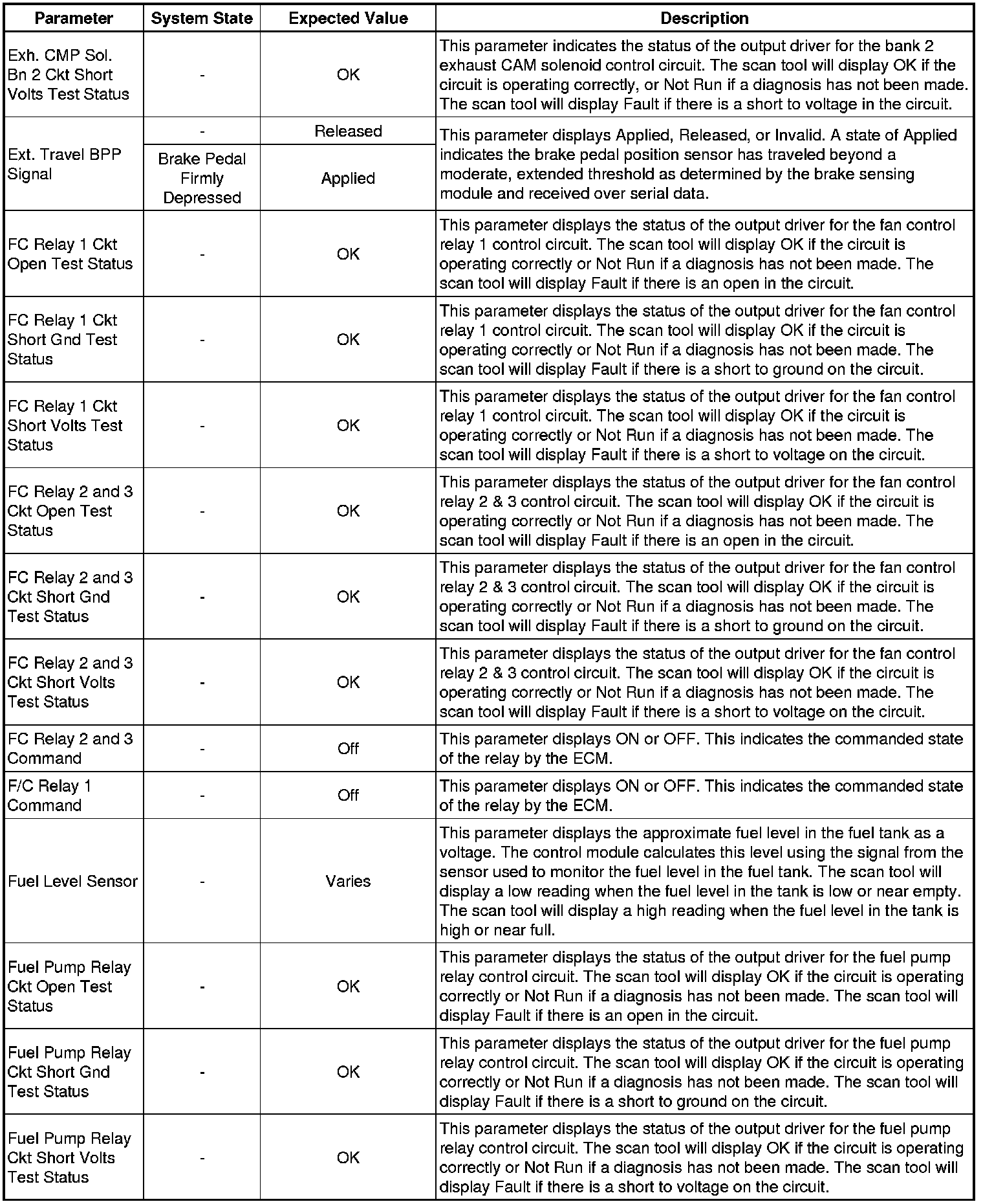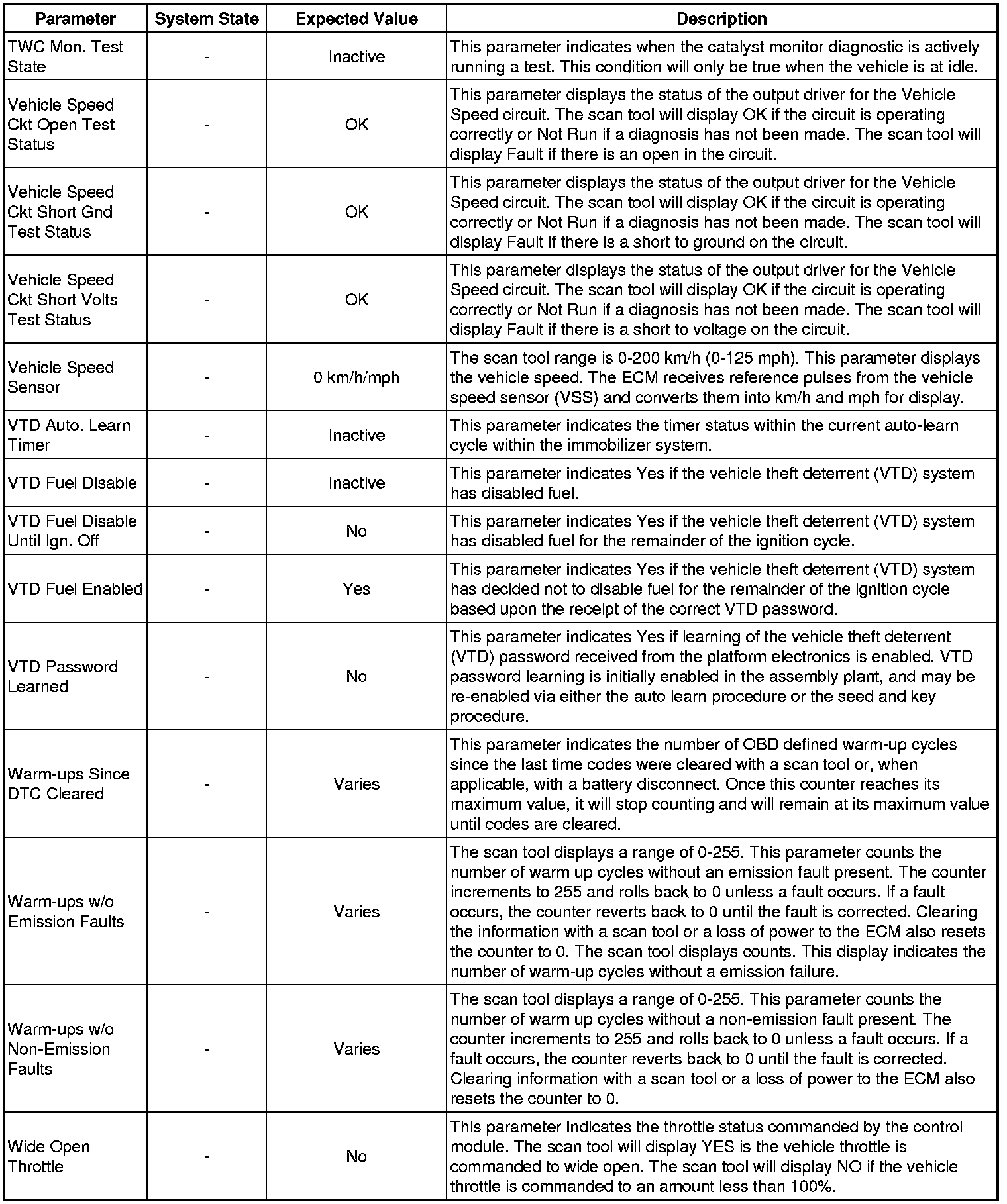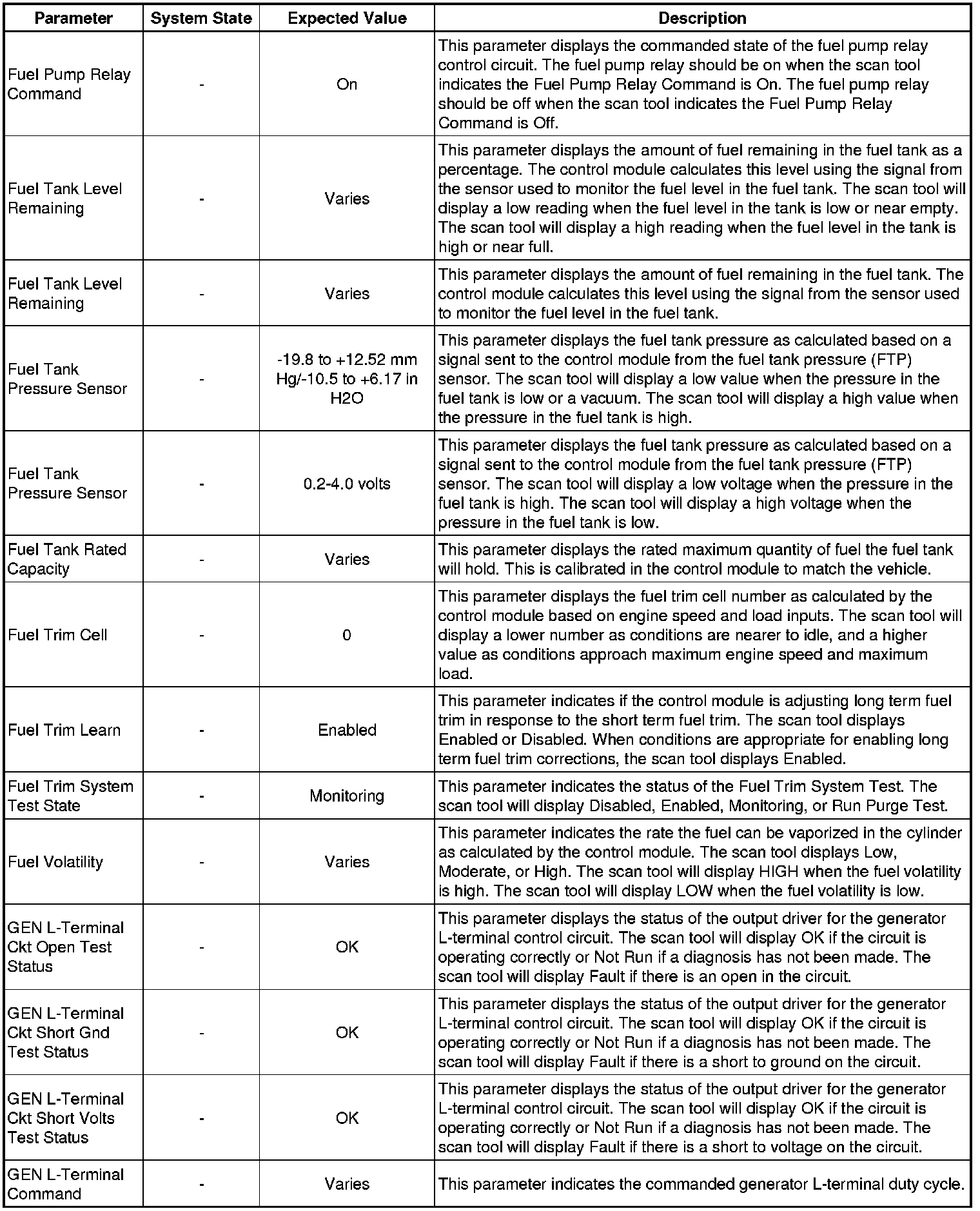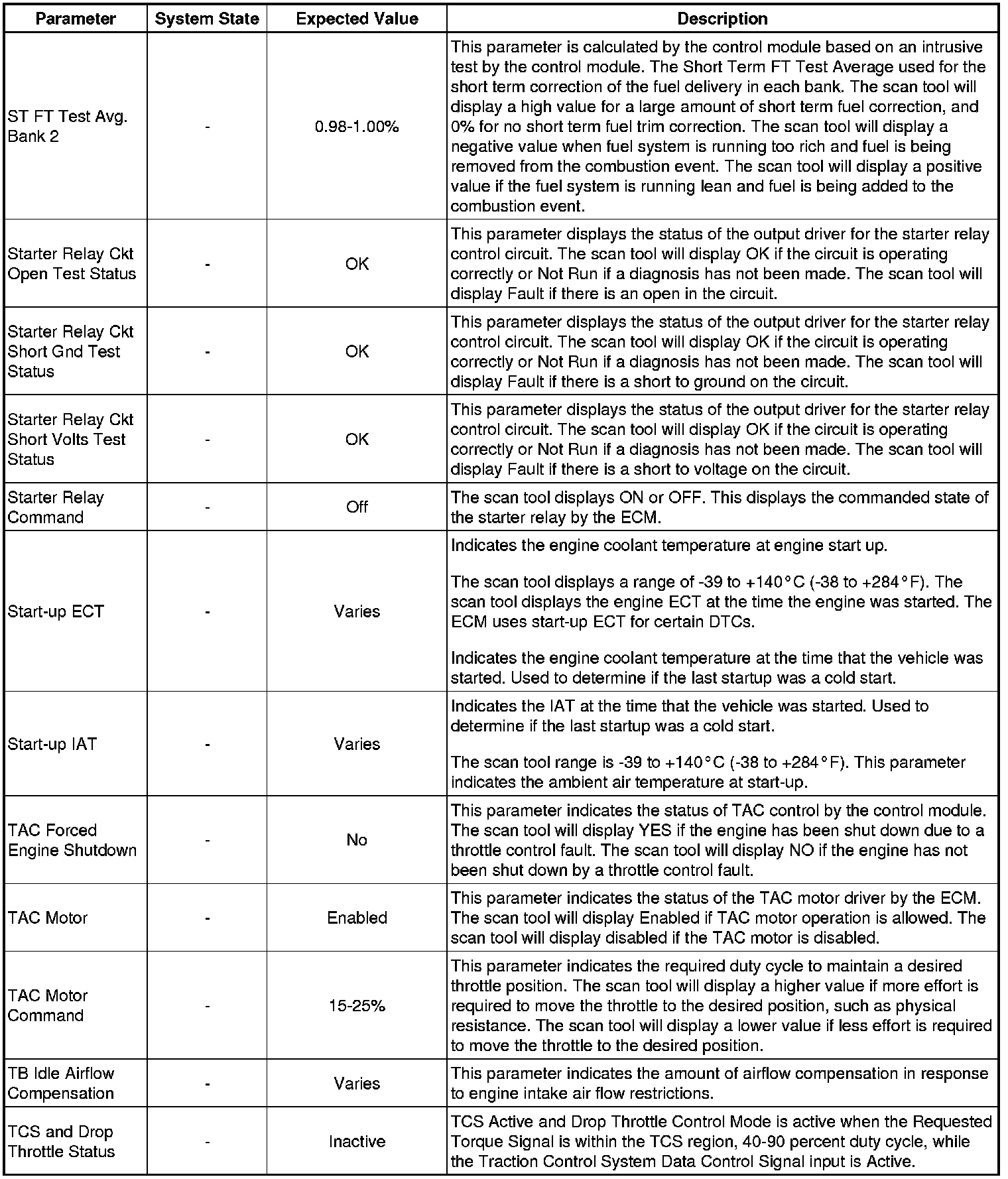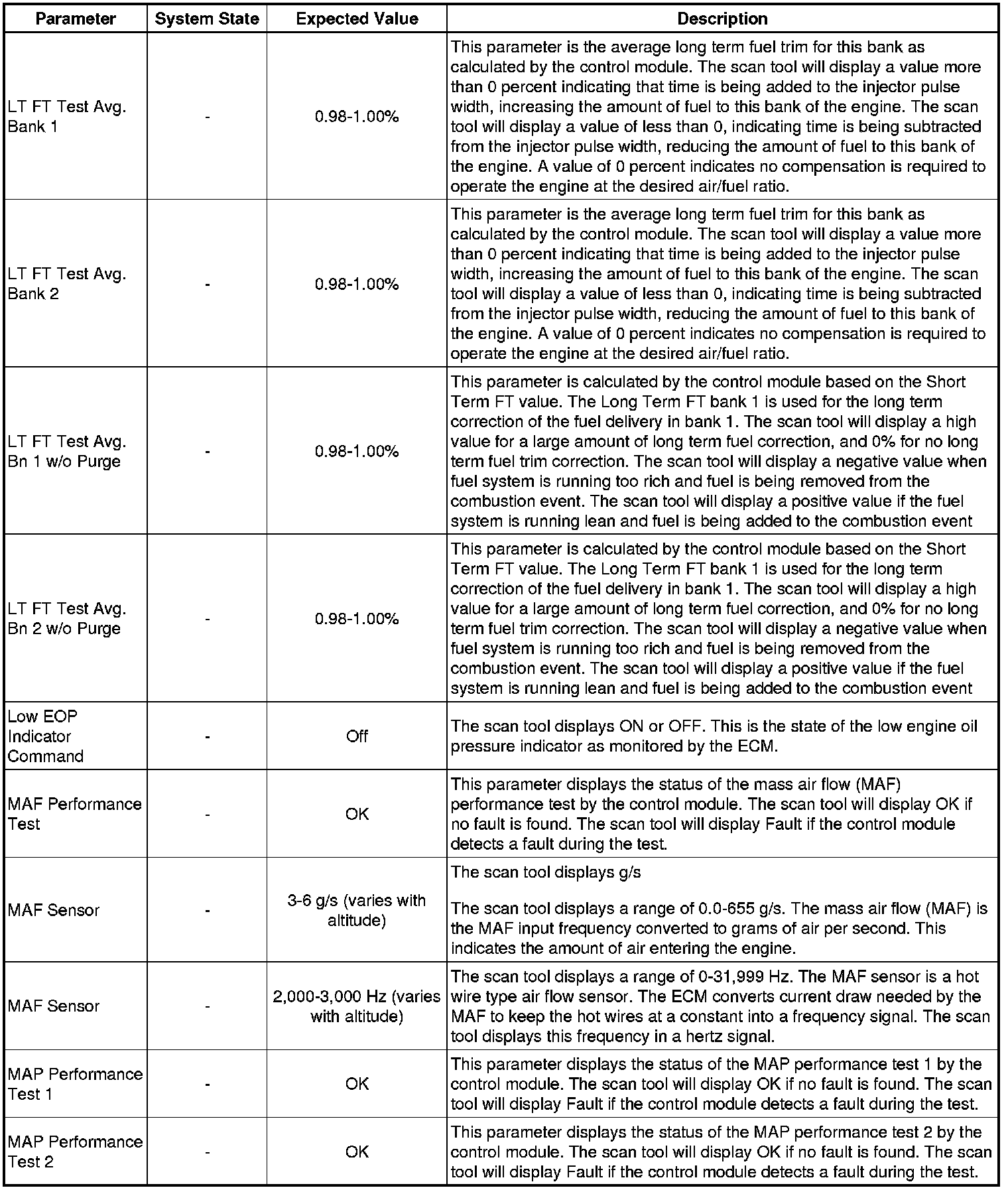 Only the parameters listed below are referenced in this service manual for use in diagnosis. If all values are within the typical range described below, refer to Symptoms - Engine Controls (- Symptoms - Engine Controls) for diagnosis.