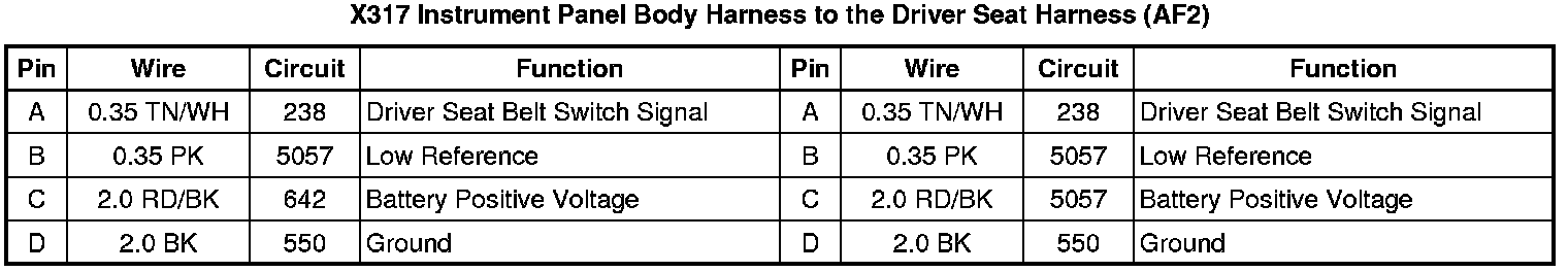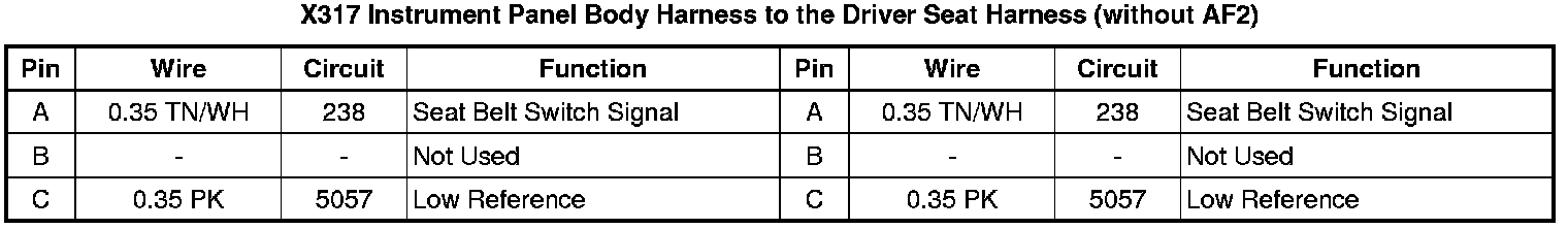 X317 Instrument Panel Body Harness to the Driver Seat Harness (AF2)