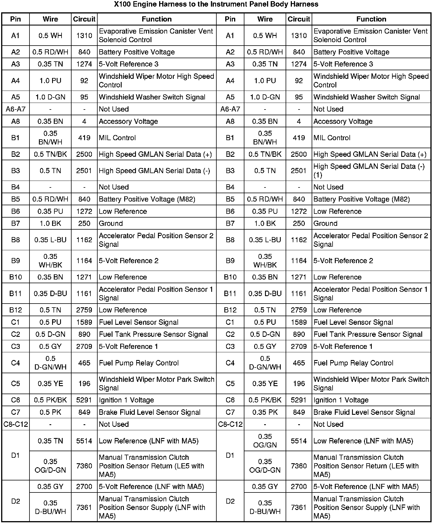 X100 Engine Harness to the Instrument Panel Body Harness