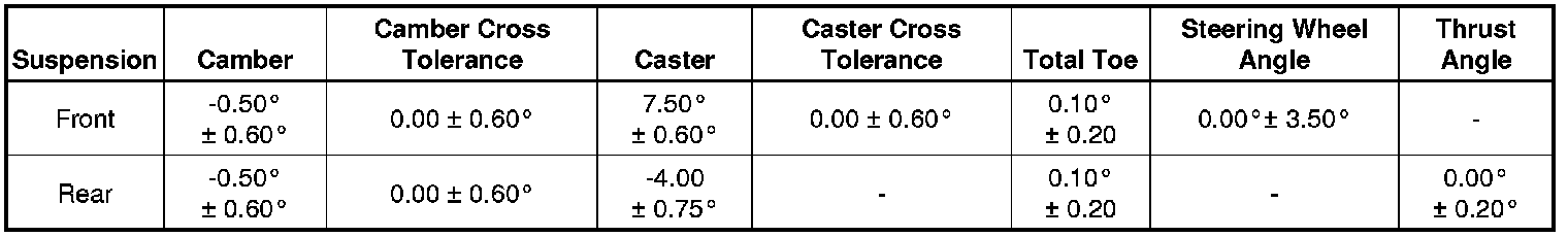 Wheel Alignment Specifications