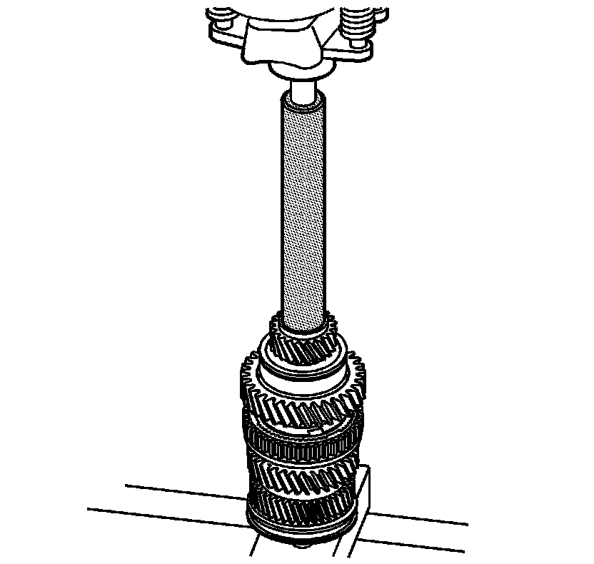 16. Using a hydraulic press, press the 1st/2nd synchronizer assembly onto the output shaft.