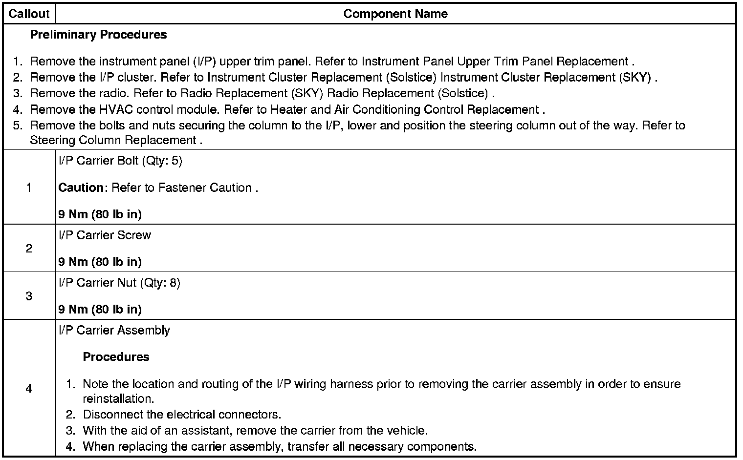 Instrument Panel Carrier Replacement (SKY)