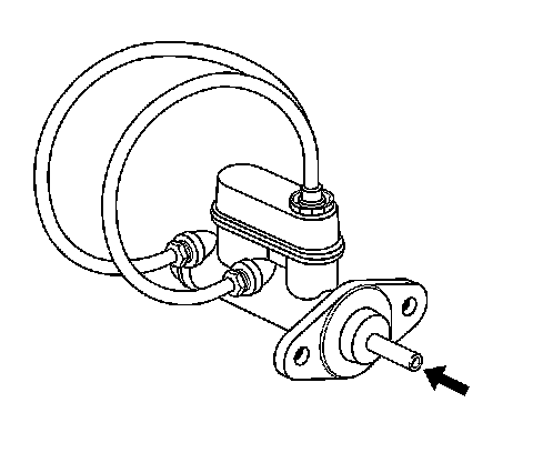 7. Using a smooth, round-ended tool, depress and release the primary piston as far as it will travel, a depth of about 25 mm (1 in), several times. Observe the flow of fluid coming from the ports.