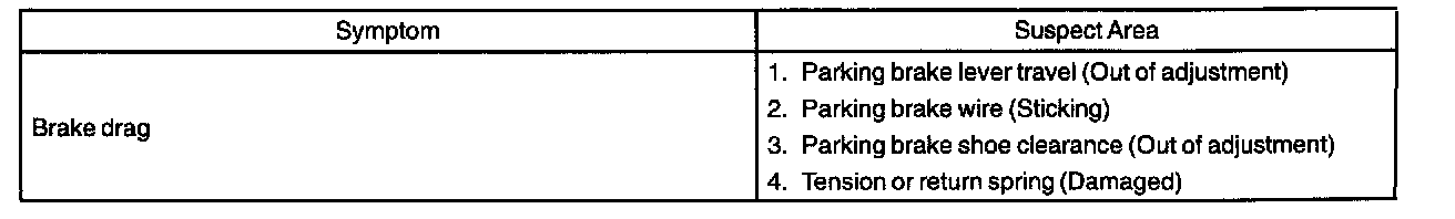 PARKING BRAKE SYSTEMPROBLEM SYMPTOMS TABLE