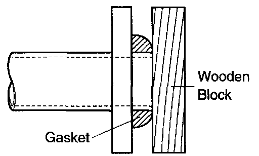 c. Using a plastic-faced hammer and a wooden block, tap in a new gasket until its surface is flush with the exhaust manifold.