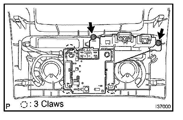 a. Release the 2 claws, and then remove the center cluster module indicator lens assy.