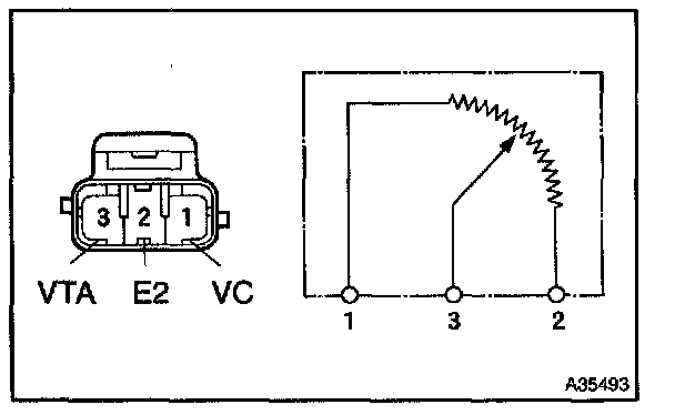 3. Check the variation in resistance between terminals VTA and E2.