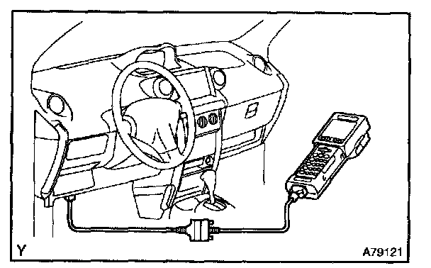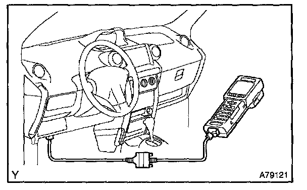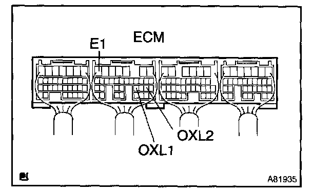 a. Connect the hand held tester to terminals 23 (OXL1) and 7(E1) and to terminals 21 (OXL2) and 7(E1) of the ECM.
