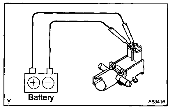 2. Connect the positive (+) and negative (-) leads from the battery to the VSV for EVAP terminals.