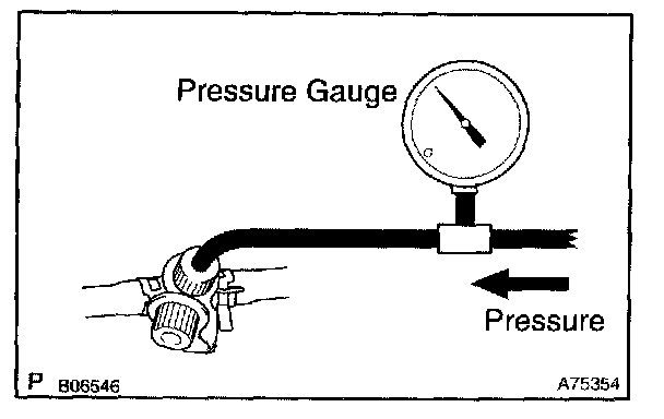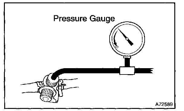 HINT: If the pressure does not decrease when the fuel tank cap is removed, then it can be concluded that the hose connecting the service port to the fuel tank is blocked, etc.