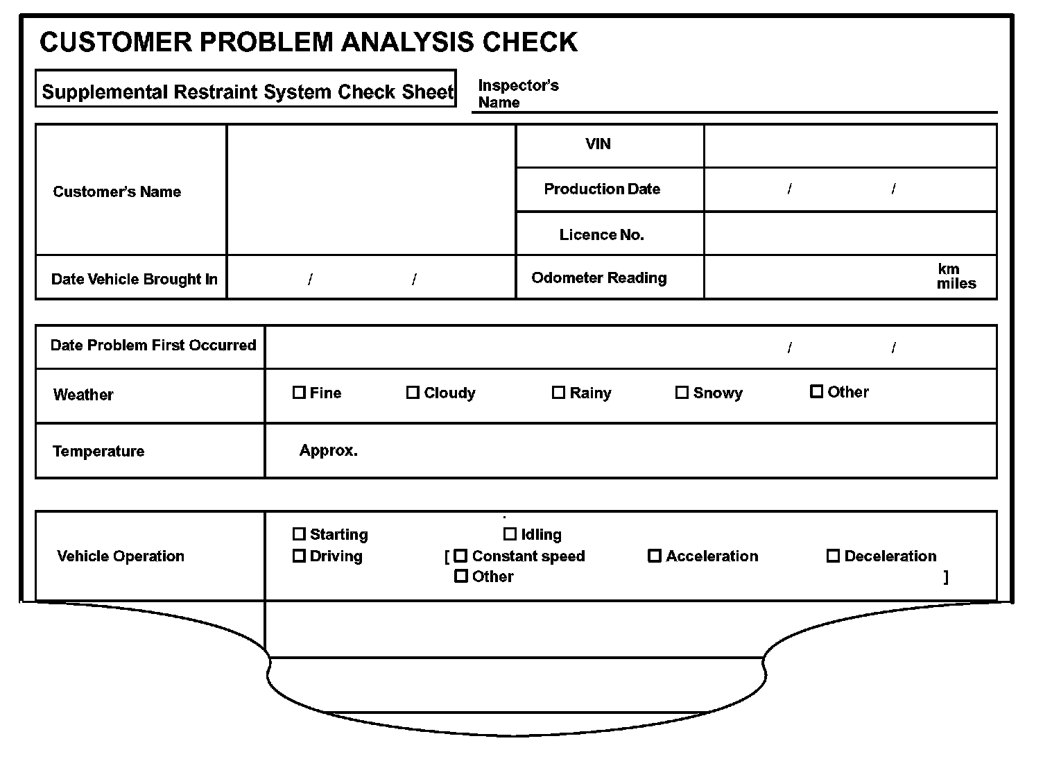 (Sample) Supplemental restraint system check sheet.
