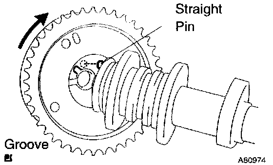 NOTICE: Be careful not to turn the camshaft timing gear to the retard angle (to the right).