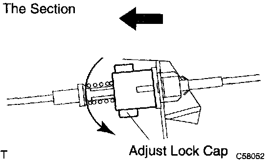 i. Rotate adjust lock cap shown in the illustration counterclockwise by 90° facing the front of the vehicle.