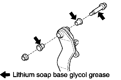 a. Apply lithium soap base glycol grease to the ends and sides of 2 new brake pedal bushes.