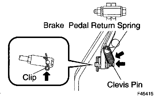 c. Remove the clip and the clevis pin and separate the master cylinder push rod clevis from the brake pedal sub-assy.