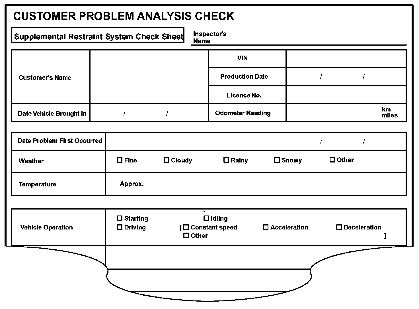 (Sample) Supplemental restraint system check sheet.