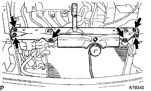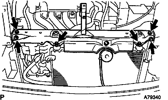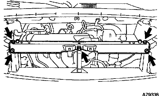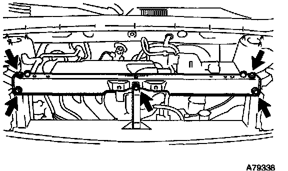 c. Remove the 4 bolts and radiator support upper.