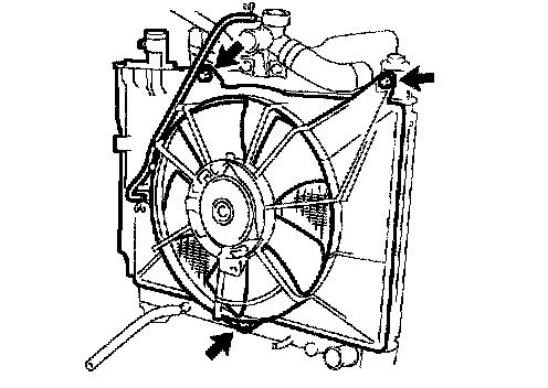 d. Install the radiator assy, and connect the connector to the cooling fan motor.