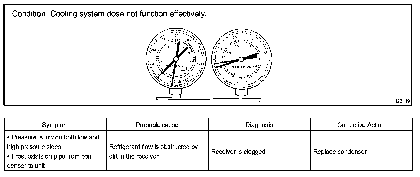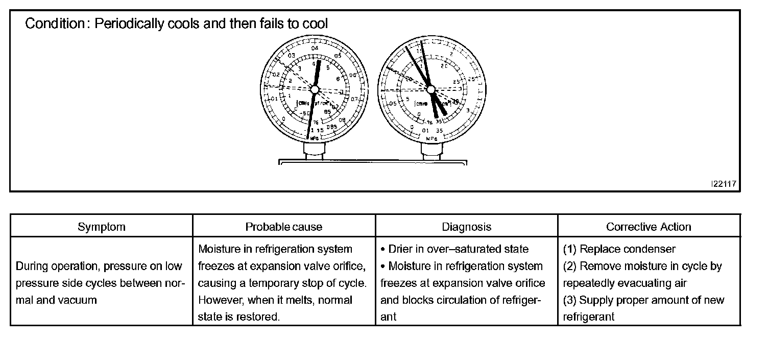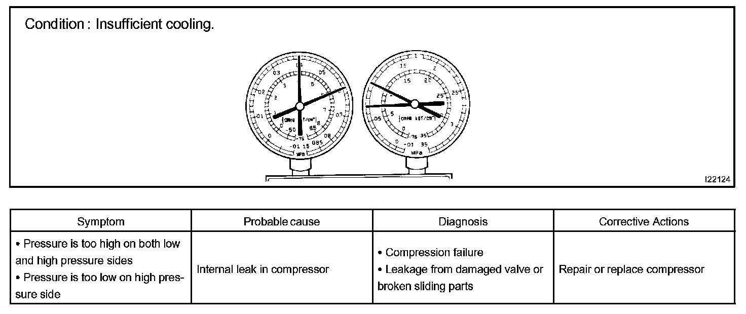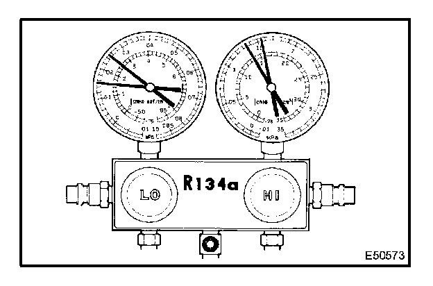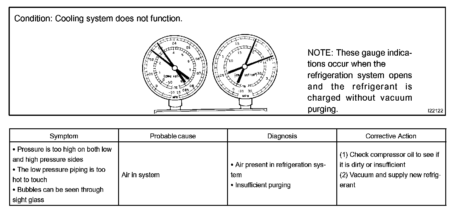 a. This is a method in which the trouble is located by using a manifold gauge set. Read the manifold gauge pressure when these conditions are established.