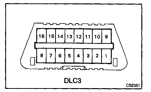 The vehicle's ECM uses the ISO 9141-2 for communication protocol. The terminal arrangement of the DLC3 complies with SAE J1962 and matches the ISO 9141-2 format.