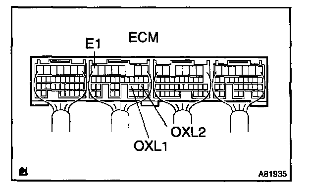 a. Connect the hand-held tester to terminals 23 (OXL1) and 7 (E1) and to terminals 21 (OXL2) and 7 (E1) of the ECM.