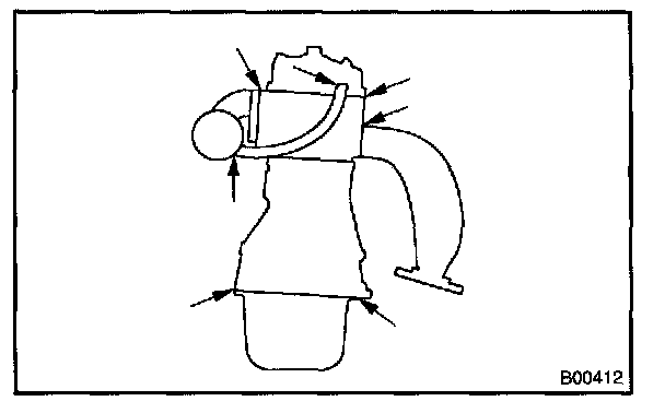 HINT: Separation of the engine oil dipstick, oil filler cap, PCV hose, etc. may cause the engine to run improperly. Disconnection, looseness or cracks in the parts of the air induction system between the throttle body and cylinder head will allow air suction and cause the engine to run improperly.