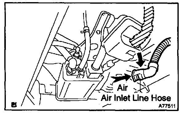 a. Disconnect the air inlet line hose from the charcoal canister.